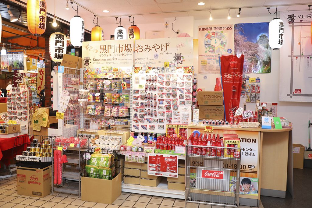 黒門市場インフォメーションセンターでは、中国語を話せるスタッフが常駐し、黒門市場の案内や、ホテルへの配送、手荷物の預かりなどのサービスを提供しています。また、交通機関チケットやお土産の販売など物販も行っています。